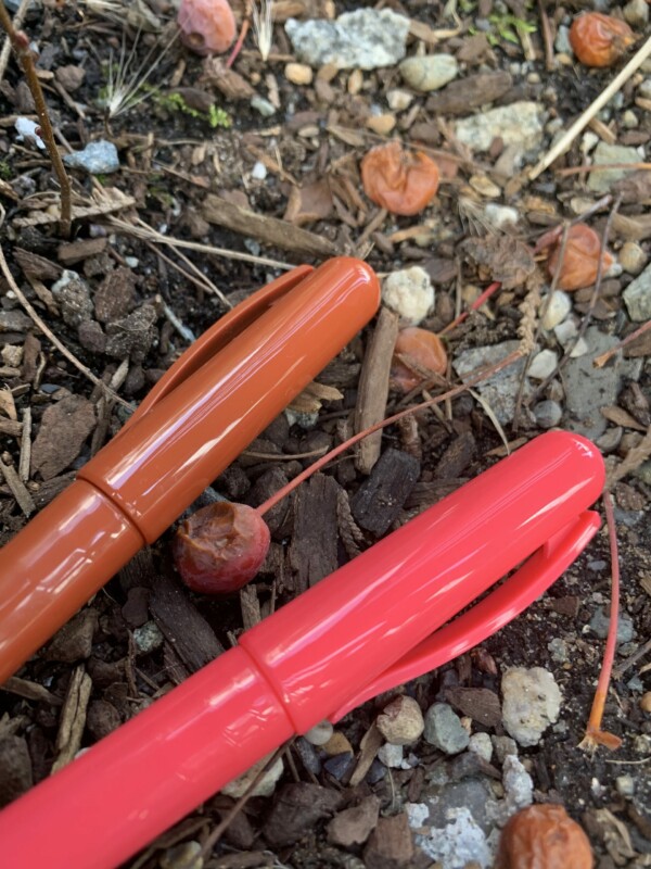 Rainbow stick outdoor activity – featuring an unknown type of berry and Crayola ‘Take Note!’ felts. (Emily)